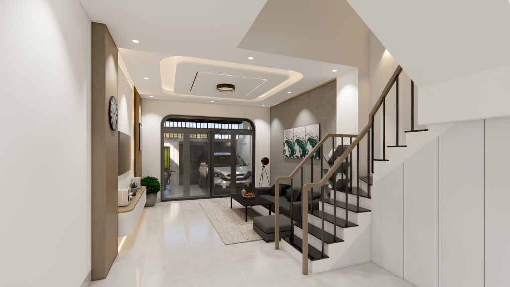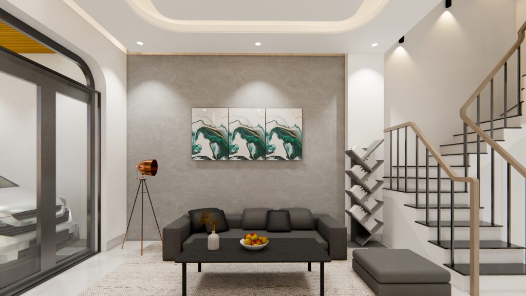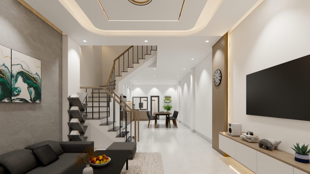 1. Giới thiệu chung về bố trí tầng trệt của mẫu thiết kế 3D nhà phố 1 trệt 2 lầu