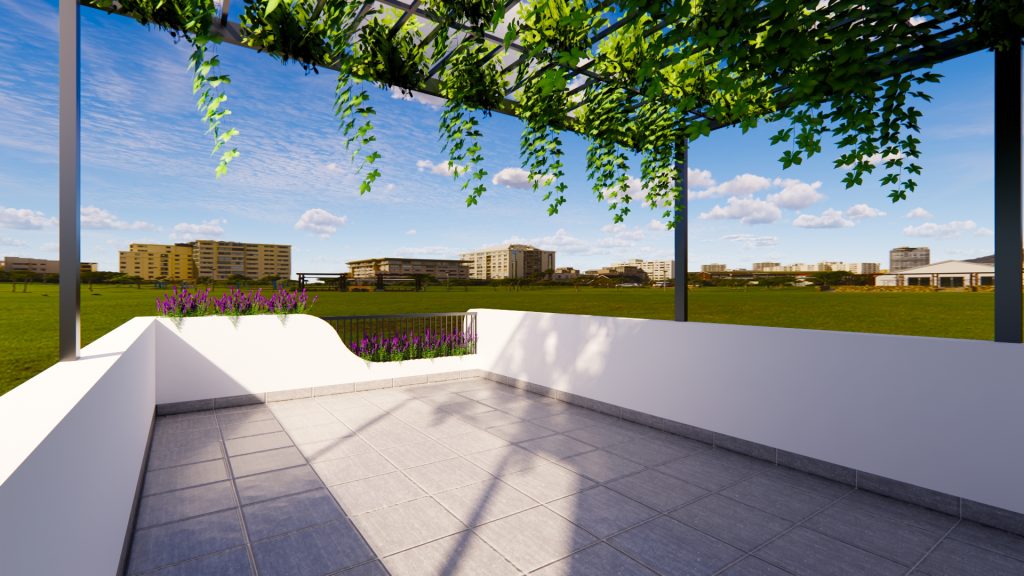 – Sân thượng được bố trí với giàn dây leo phía sân trước vừa tạo cảnh quan sinh động, vừa tăng tính thẩm mỹ và bóng mát cho không gian cho gia đình. Ngoài ra cũng có thể bố trí tiểu cảnh, khu lounge, khu tiệc nướng ngoài trời, ….